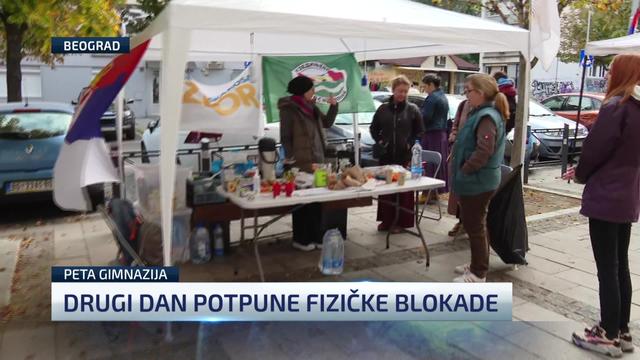 Danas je drugi dan totalne fizičke blokade Pete beogradske gimnazije, a učenici ne odustaju od svojih zahteva i pozivaju građane da dođu ispred škole i da ih podrže.