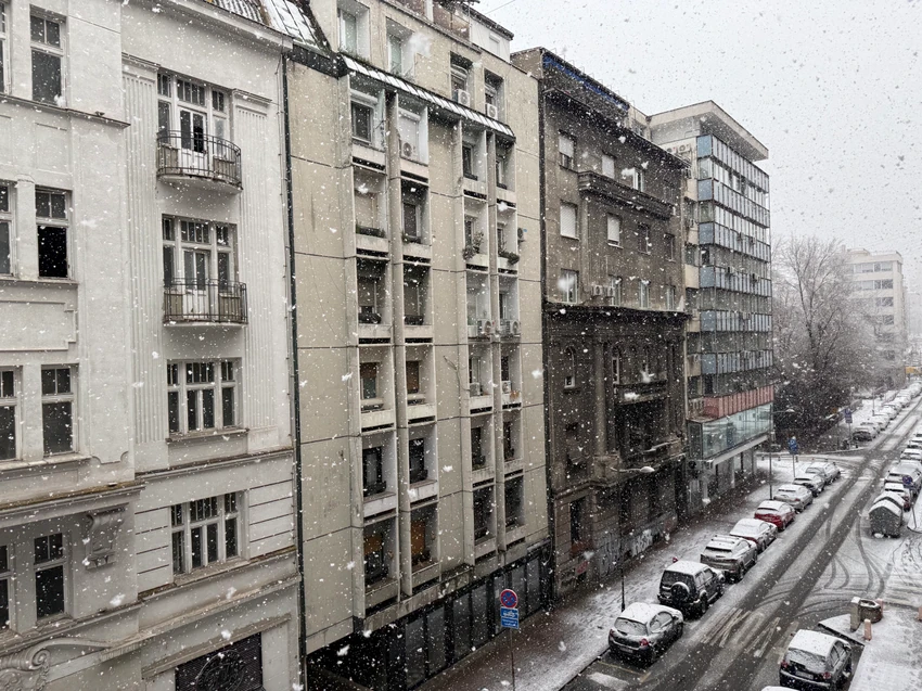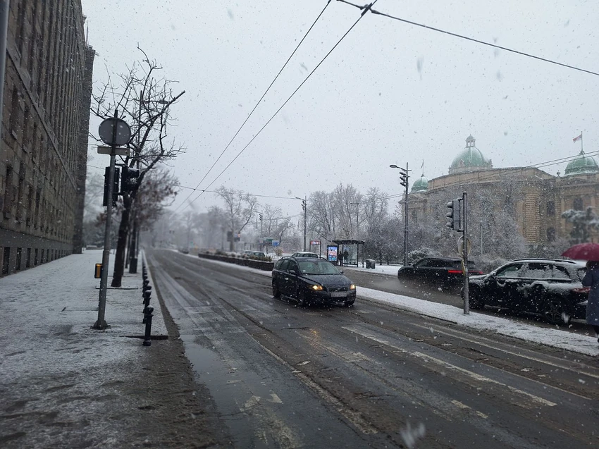 Već tri sata ne prestaje da veje u Beogradu! Krupne pahulje prekrile su ulice, krovove i parkove širom prestonice, stvarajući pravu zimsku atmosferu, dok jak vetar dodatno pojačava osećaj hladnoće i otežava građanima.
