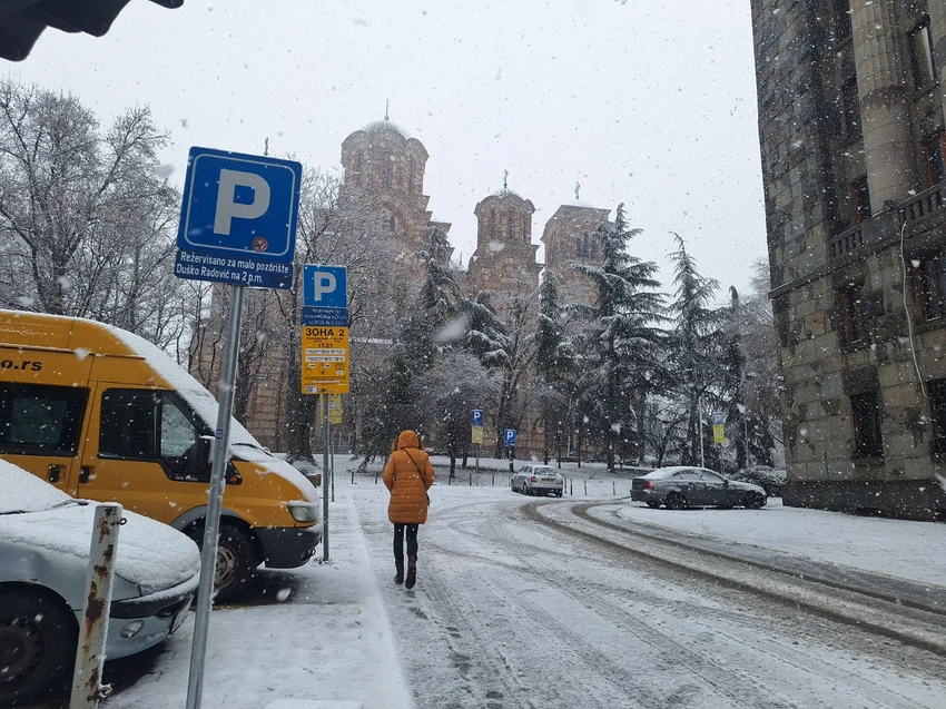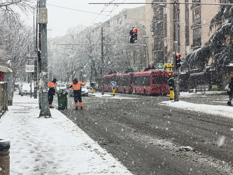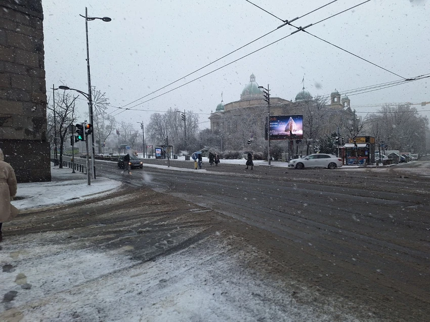Snežni pokrivač je već formiran, a prizori iz različitih delova grada svedoče da se sneg brzo zadržava na kolovozima i trotoarima.